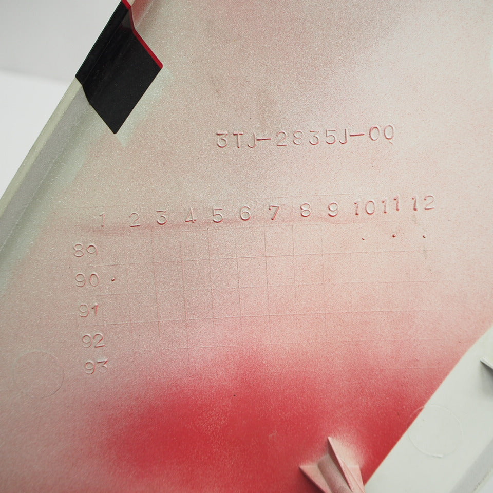 A rare find for those restoring or repairing a 1990 Yamaha FZR400RR 3TJ β this is the genuine left-side under cowl duct, stamped 3TJ-2835J-00.