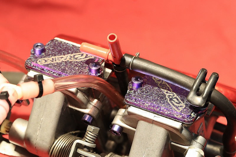 A lightweight titanium upgrade designed to enhance both durability and appearance of the NSR carburetor assembly.